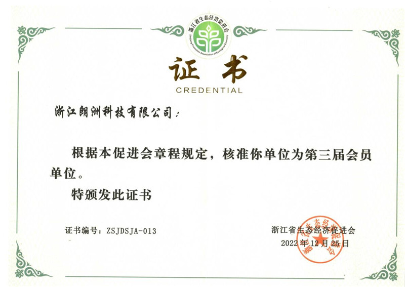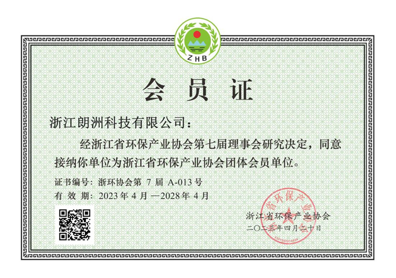 浙江省环保产业协会会员证书