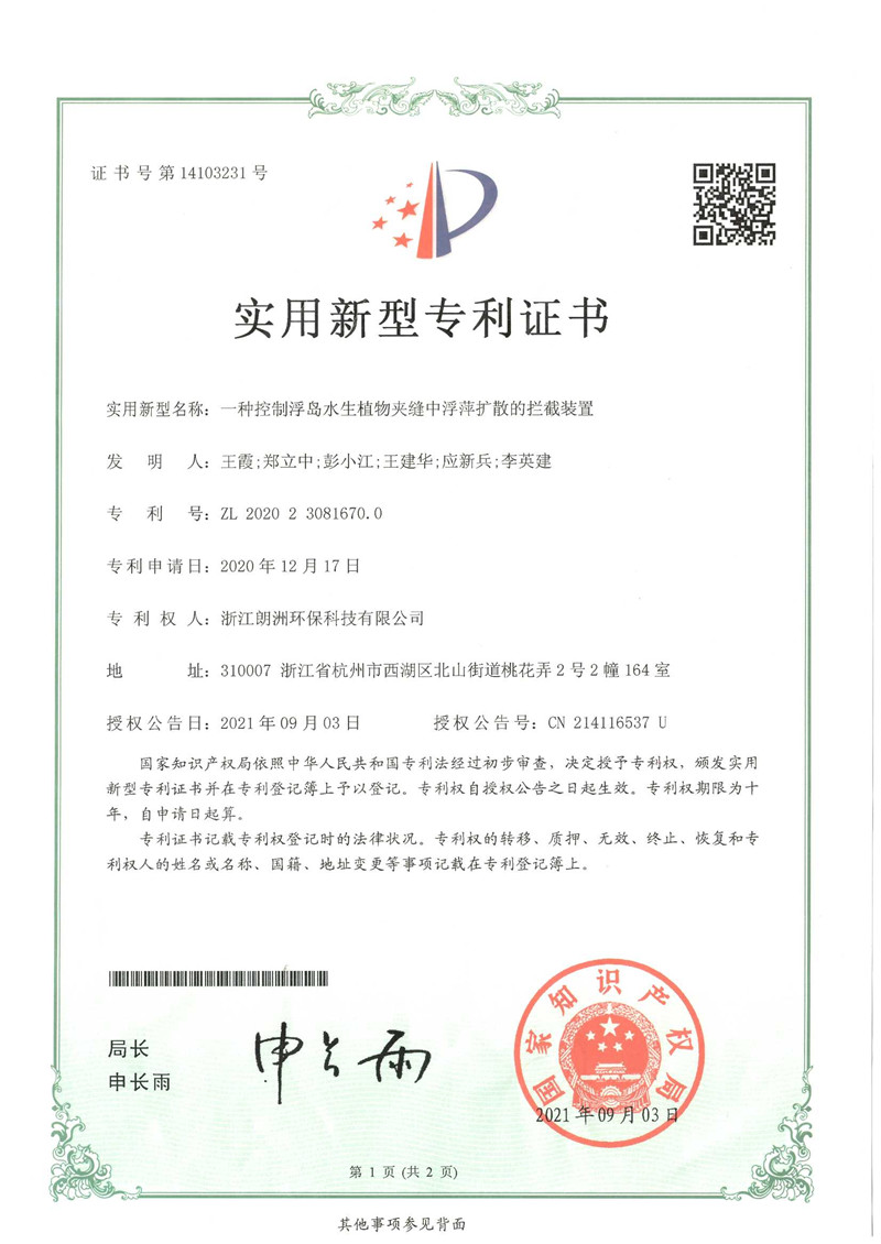一种控制浮岛水生植物夹缝中浮萍扩散的拦截装置