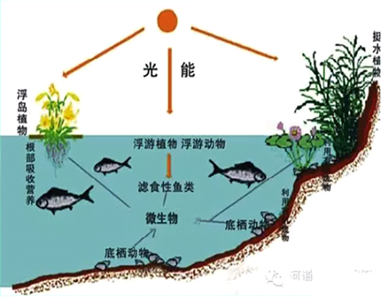 ④ 绿色生态:以沉水植物、浮游生物及微生物为主体,低能耗,绿色节能。